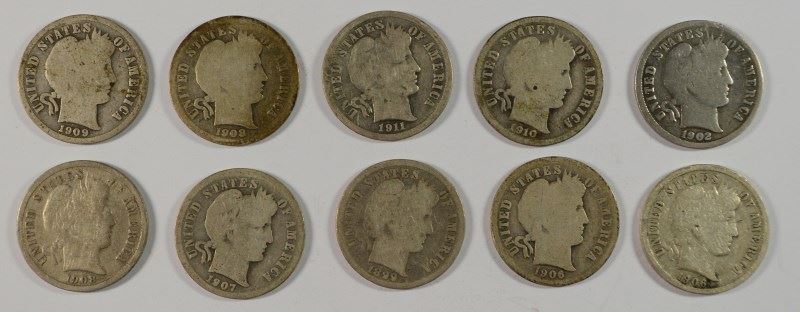 (10) BARBER DIMES (99, 02, 06, 06-D, 07, 08, 08-D, 09, 10, 11)
