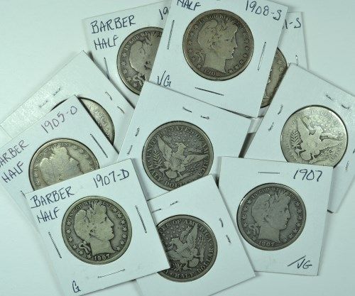 10 BARBER HALF DOLLARS )01-O,01-S,03-O,04-S,05-O,05-S,07,07-D,08-D,08-S) AG-VG