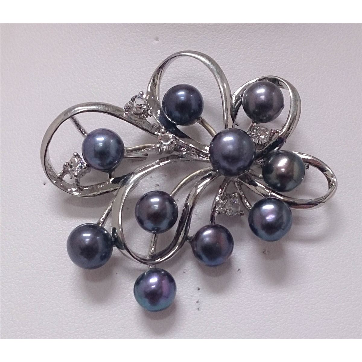 10 BLACK PEARL CZ BROOCH AUTHENTIC PHILIPPINE PEARL MET **|**|** 10 BLACK PEARL CZ BROOCH AUTHENTIC PHILIPPINE PEARL METAL SILVER