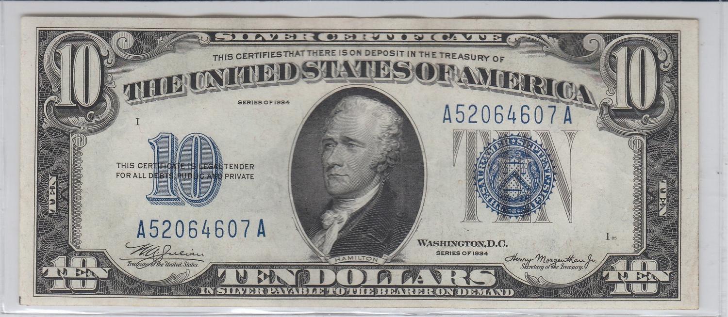 $10 BOLD SILVER CERTIFICATE 1934