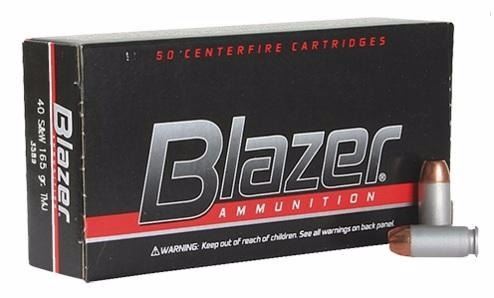 (500 ROUNDS) Mfr Items:CCI Category:CENTERFIRE HANDGUN ROUNDS Model:Blazer Series:Handgun Caliber:40 Smith & Wesson Bullet Type:Total Metal Jacket Bullet Weight:165 GR Muzzle Energy:443 ft lbs Muzzle Velocity:1100 fps Rounds Per Box:50 Application:Performance/Protection Casing Material:Aluminum BECCA
