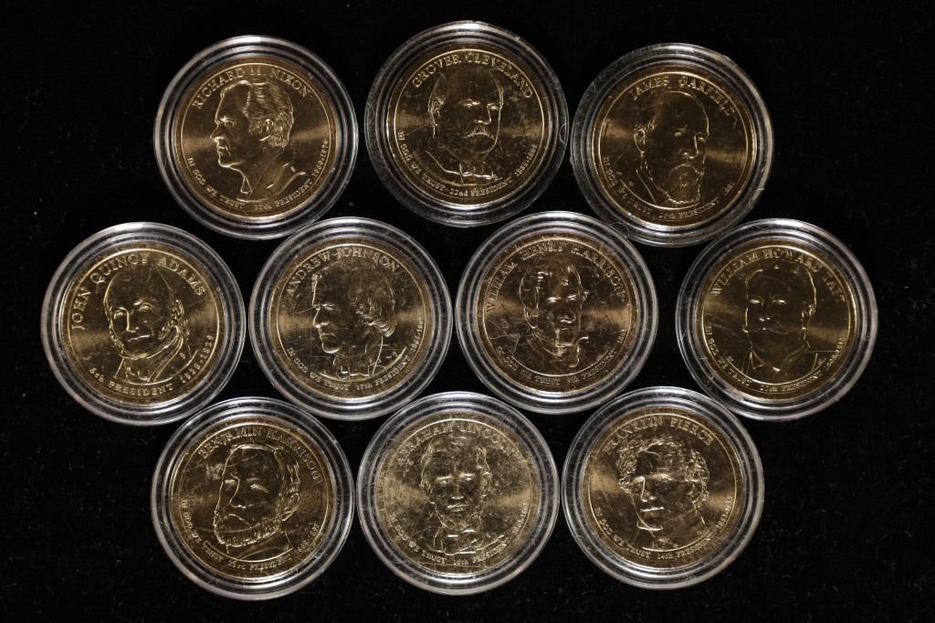 GARFIELD, ADAMS, JOHNSON, HARRISON, TAFT, BENJAMIN HARRISON, LINCOLN AND PIERCE. IN HARD PLASTIC CAPSULES