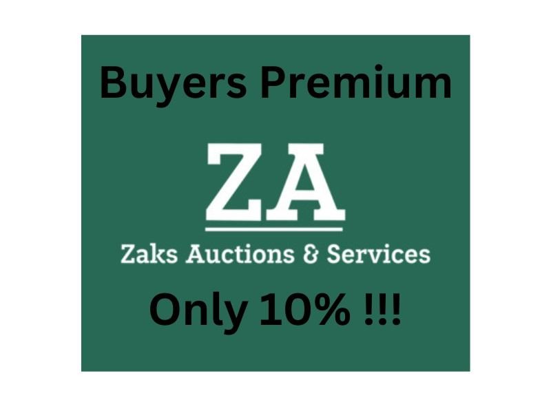 The Goods are offered for sale "as is". The description of the Goods is based on the information supplied to Zaks Auctions. However, Zaks Auctions makes no representations or warranties, expressed or implied, as to the quantity, kind, character, quality, weight, size or description of the Goods, or the condition, performance, merchant-ability or fitness for any use or purpose. It is the Purchaser's responsibility to make all necessary inquiries regarding the Goods. The Purchaser is deemed to have relied entirely on the Purchaser's own inspection and evaluation. It is up to the Purchaser to ask any and all questions surrounding the Good(s) prior to placing a bid, and having a bid resulting in a Purchase, Sale of Good(s).