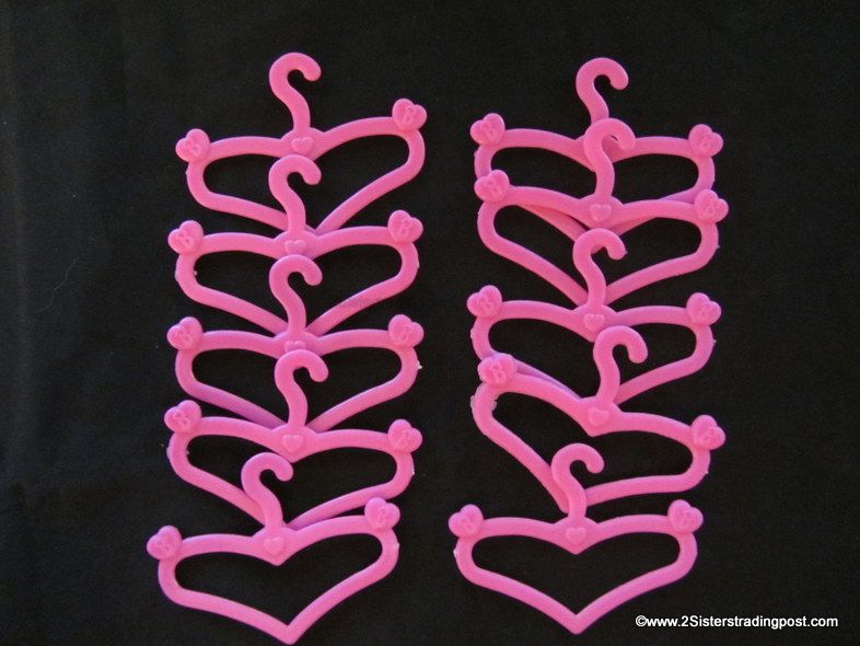 You are bidding on 10 Barbie hangers all in the heart shaped style. All hangers are