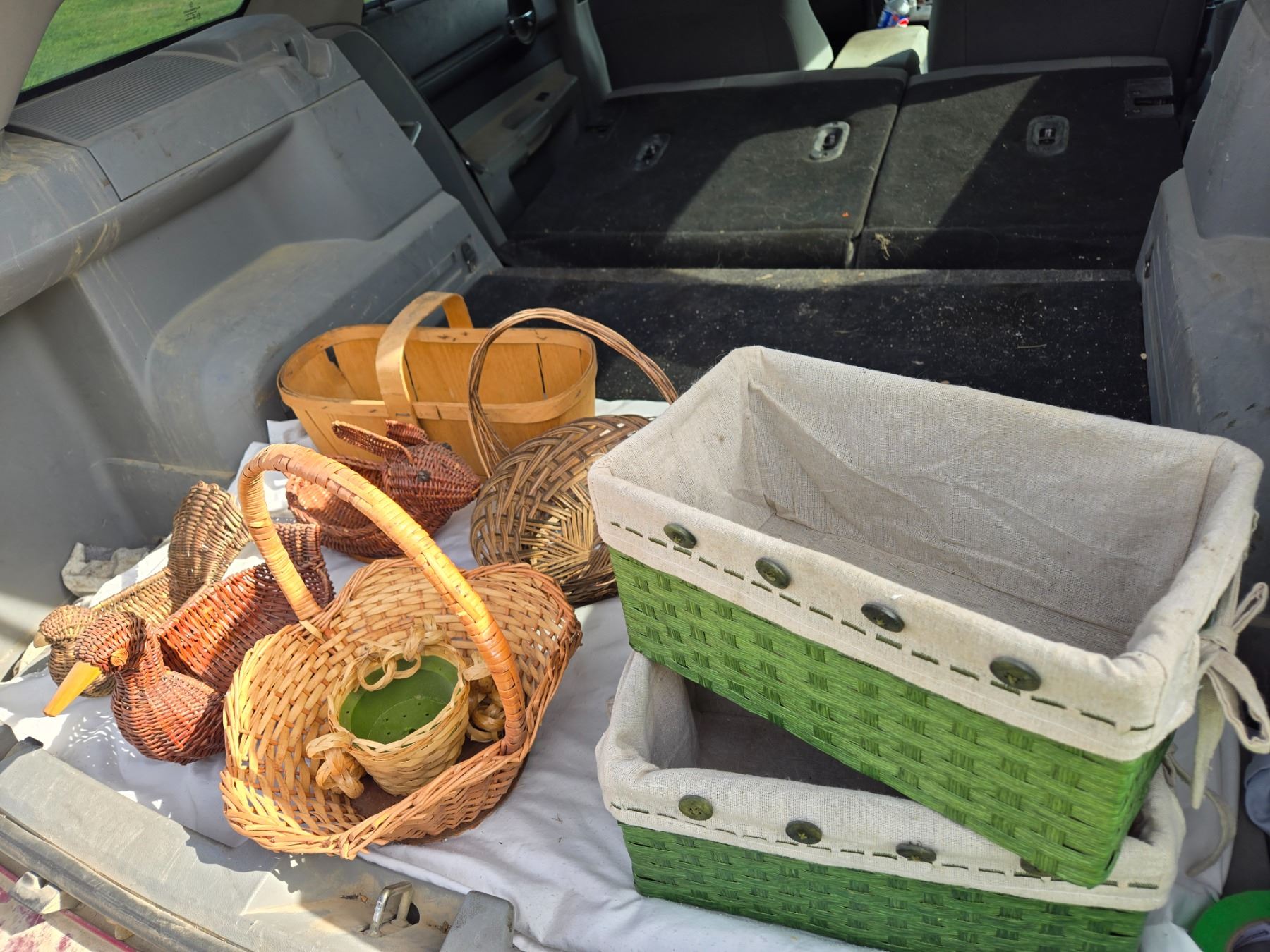 10 Baskets, some shaped, some with handle’s, 2 lined