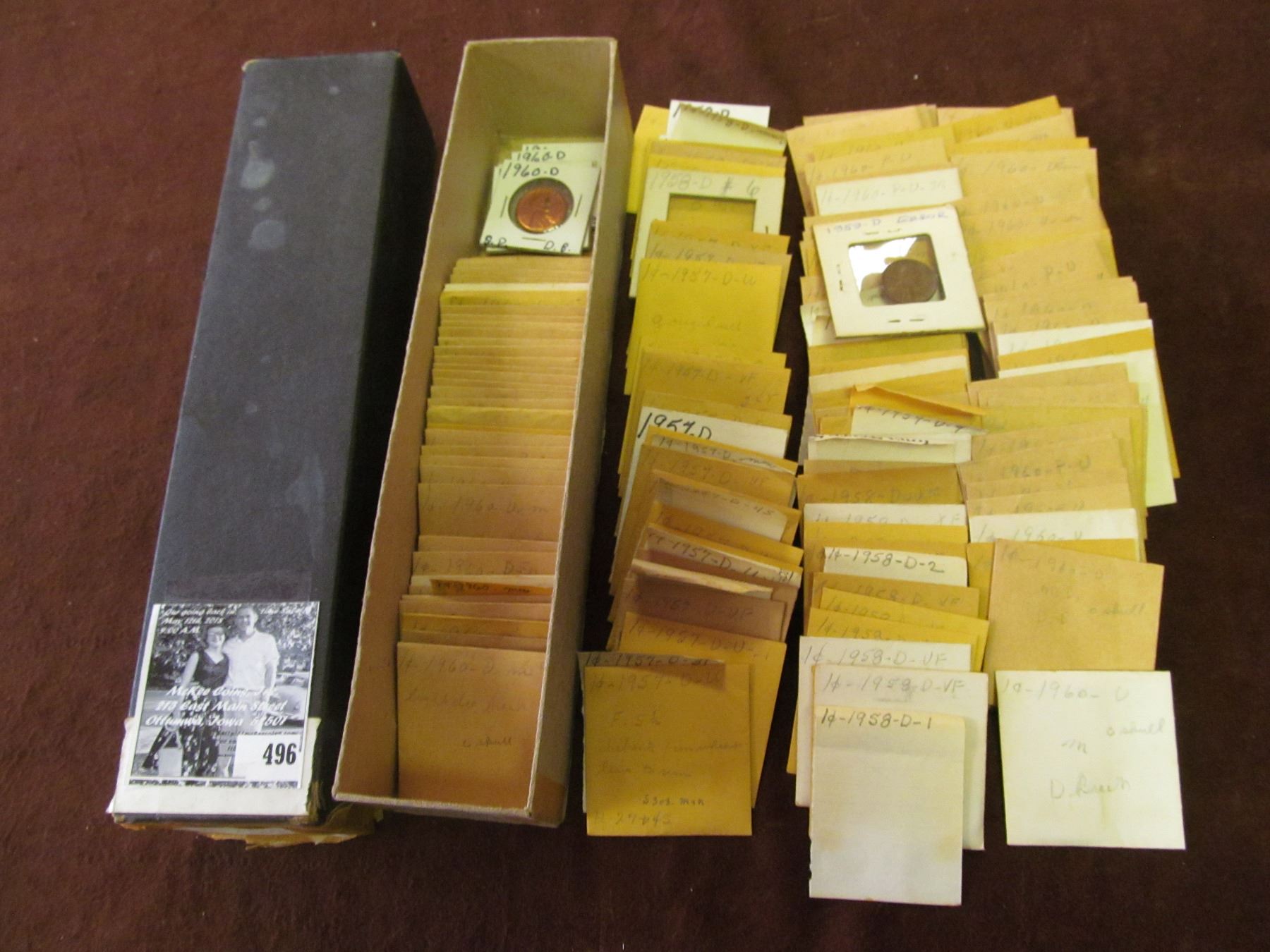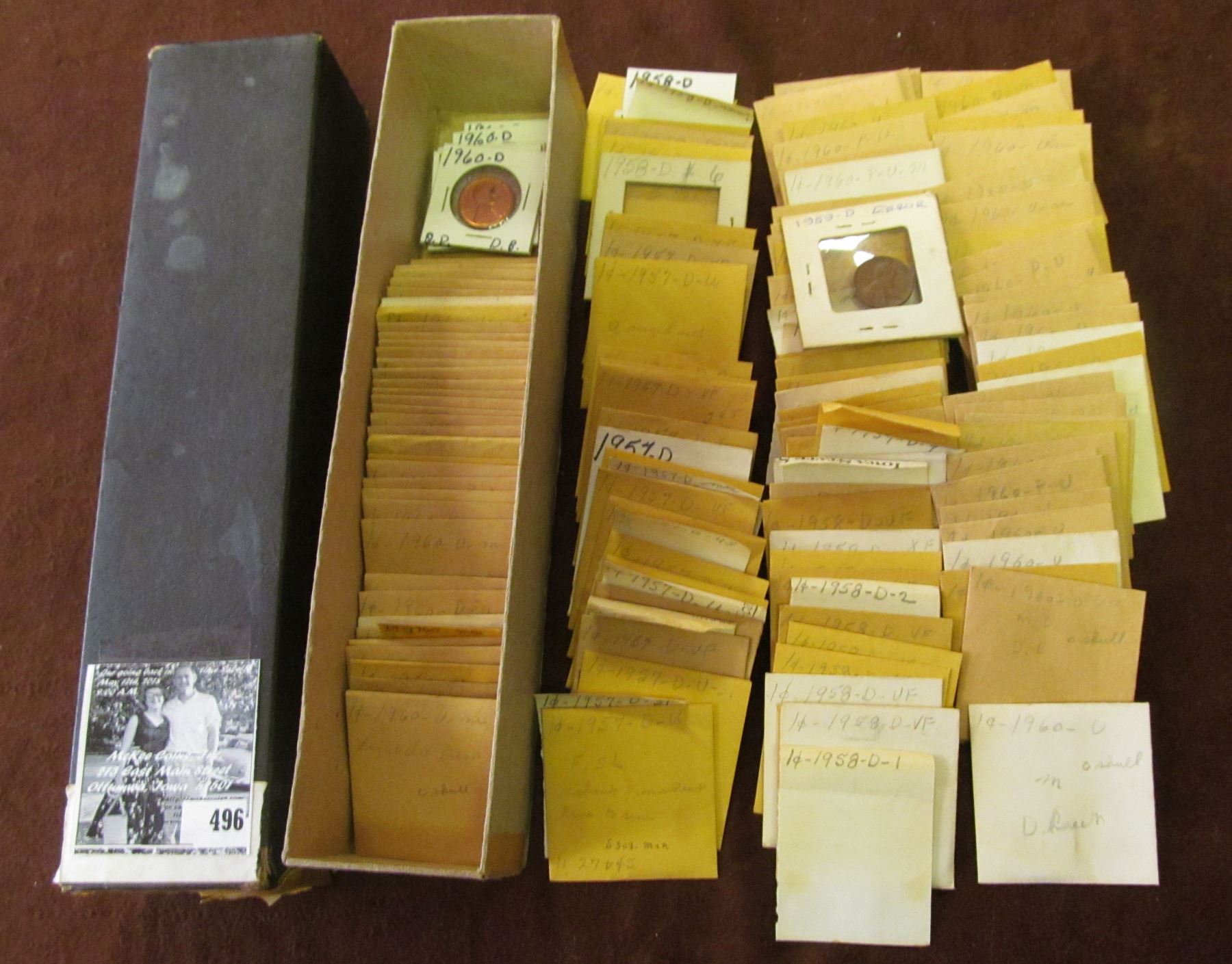 10" Black 2" x 2" Stock Box full of manilla envelopes containing 1957-60 Lincoln Cents with minor Mint errors.