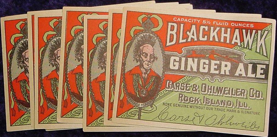 (10) Blackhawk Ginger Ale Bottle Labels.