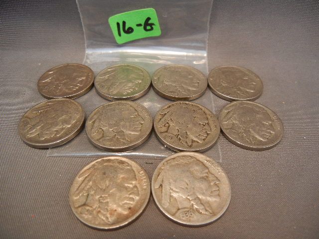 10 Buffalo Nickels, Mixed Dates