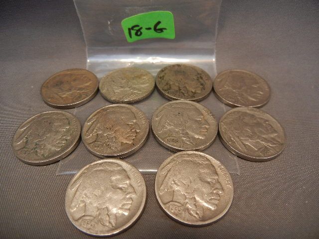 10 Buffalo Nickels, Mixed Dates