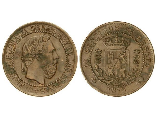 10 Céntimos. 1875. BRUSELAS. Anverso y reverso coincidente. Tipo medalla. Cal-8. MBC.