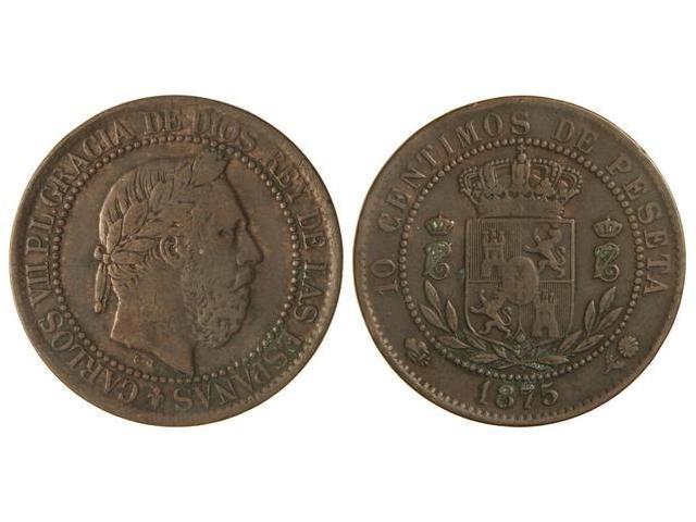 10 Céntimos. 1875. BRUSELAS. Anverso y reverso coincidentes. Tipo medalla. (MBC+).