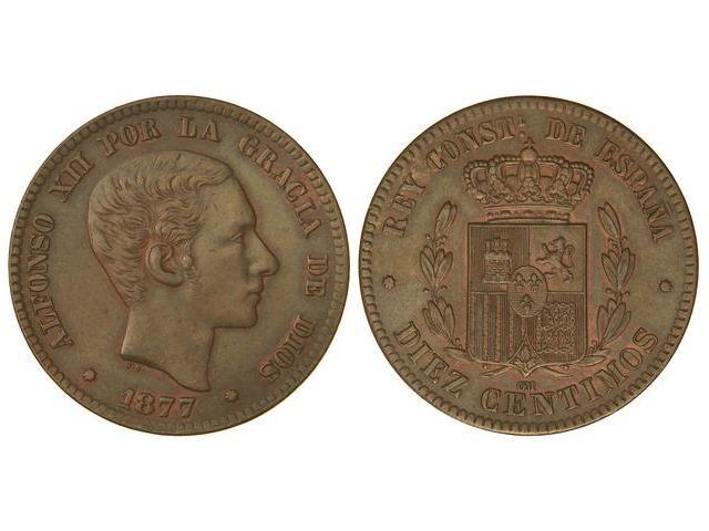 10 Céntimos. 1877. BARCELONA. O.M. EBC-.