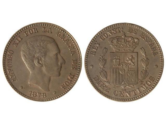 10 Céntimos. 1878. BARCELONA. O.M. (Leves golpecitos). EBC-.