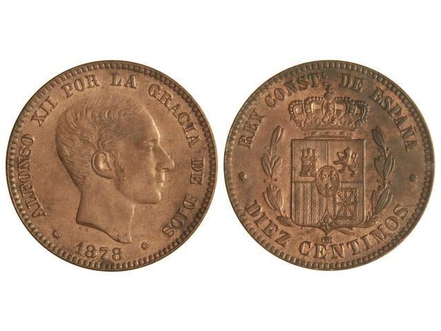 10 Céntimos. 1878. BARCELONA. O.M. Pátina en reverso. Restos de brillo original. SC.