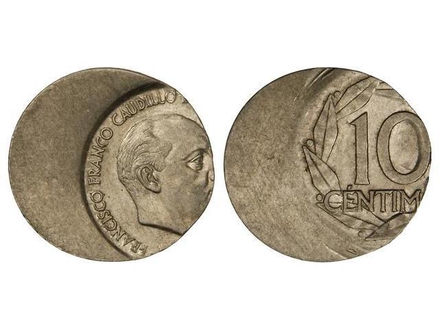10 Céntimos. (1959). ERROR: Descentrada y desplazada un 50%. EBC.