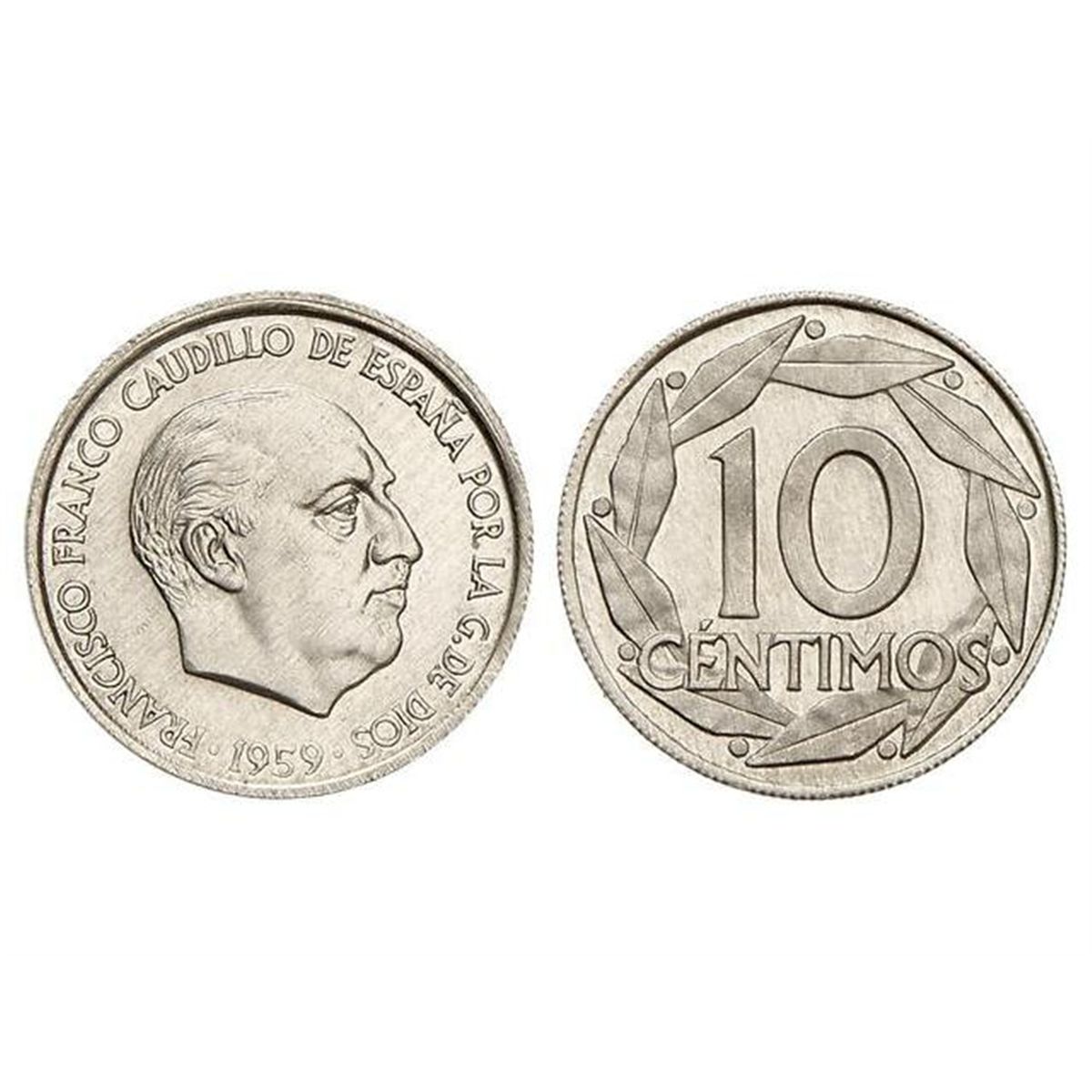10 Céntimos. - 1959. - Procedente de carterita F.N.M.T. Reverso girado 170º. SC. - -