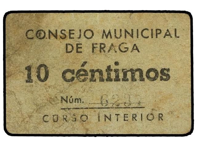 10 Céntimos. CONSEJO MUNICIPAL de FRAGA (Huesca). Cartulina. (Algo sucio). TFP-226. MBC.