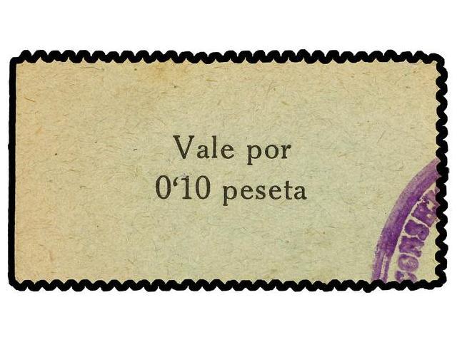 10 Céntimos. Cartón. Sello al dorso CONSEJO MUNICIPAL DE B... no podemos asegurar su origen, el propietario afirma que es de BIELSA (Huesca). RARÍSIMO.