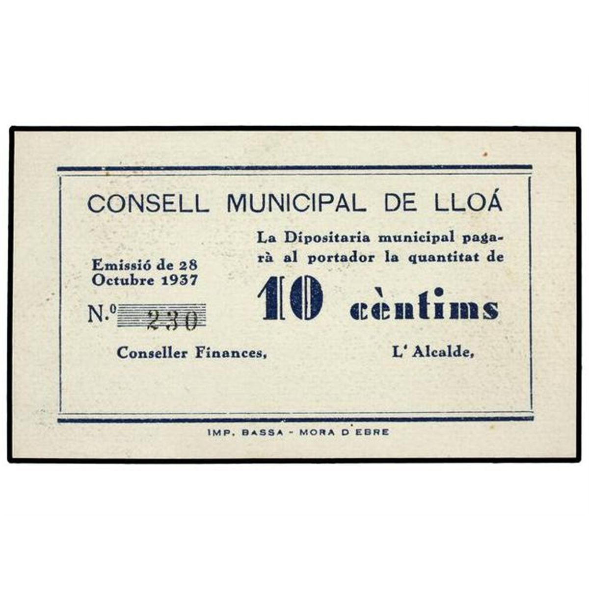 10 Cèntims. - 28 Octubre 1937. - C.M. de LLOÀ. - Sin firmas. RARO. AT-1364c; T-1559. EBC+. - -