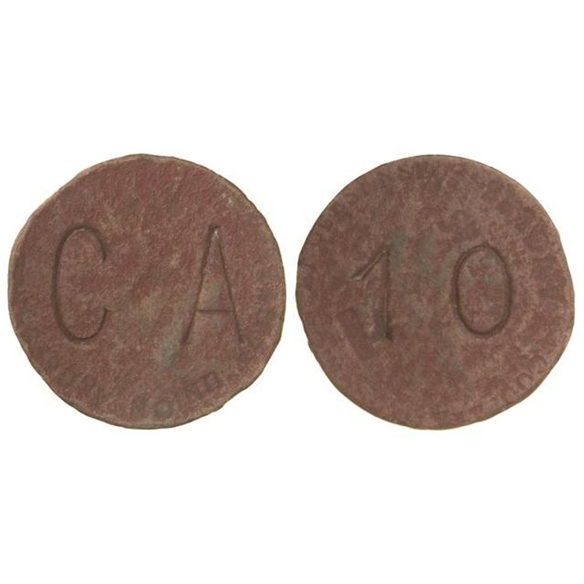 10 Cèntims. - ANGLES. COOPERATIVA UNIÓ ANGLESENSE. - Cartón disco. Contramarca 10/CA sobre un cartón de la Cooperativa. RARA. MBC-. - -