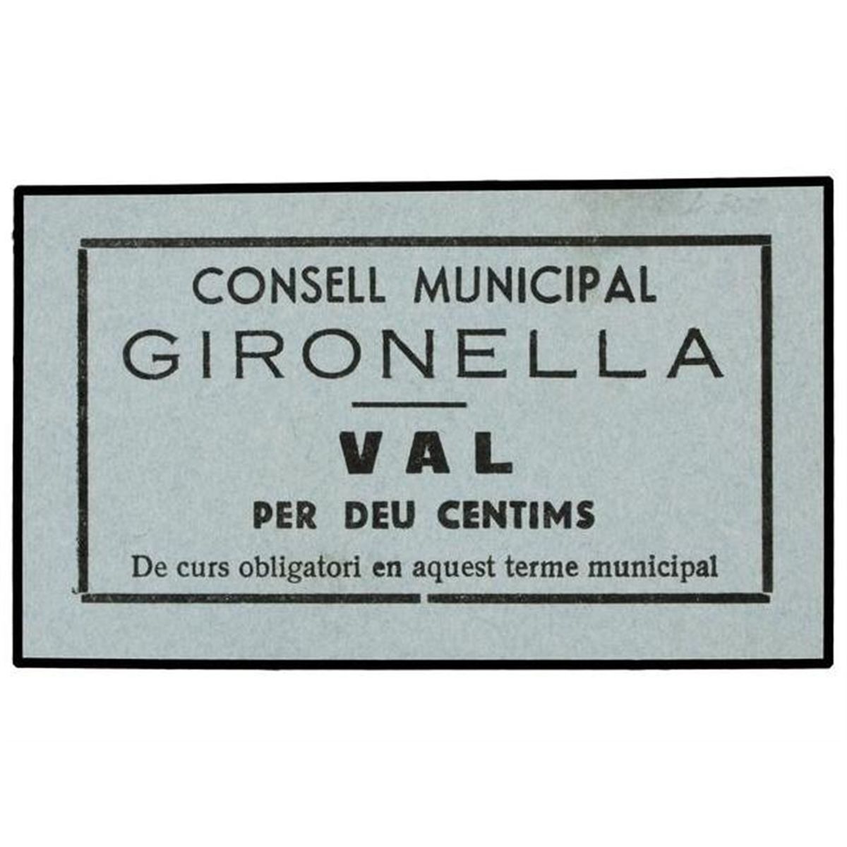 10 Cèntims. - C.M. de GIRONELLA. - Cartón. Tampón al dorso. MUY RARO. AT-1130a; T-1308. SC. - -