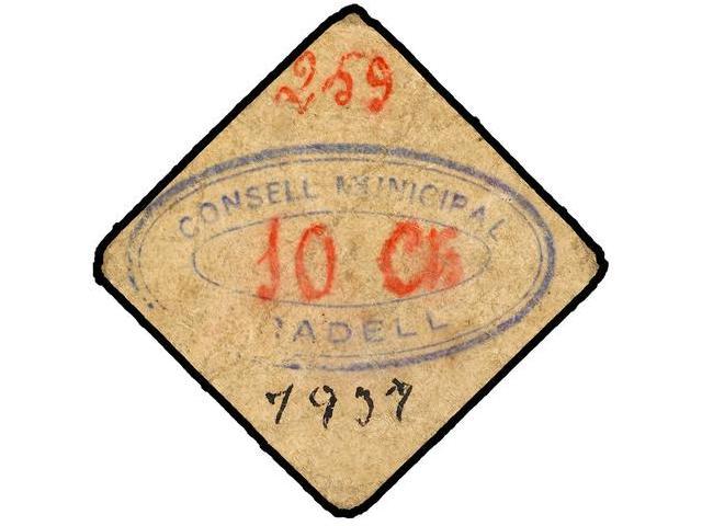10 Cèntims. C.M. de PRADELL. Cartulina. (Algo sucio). RARO. AT-1977; T-2280. MBC-.