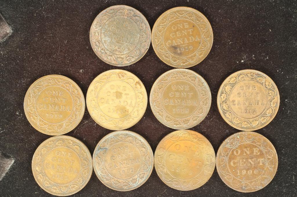 10 CANADA LARGE CENTS 1906, 09, 12, 13, 17, 2-1918