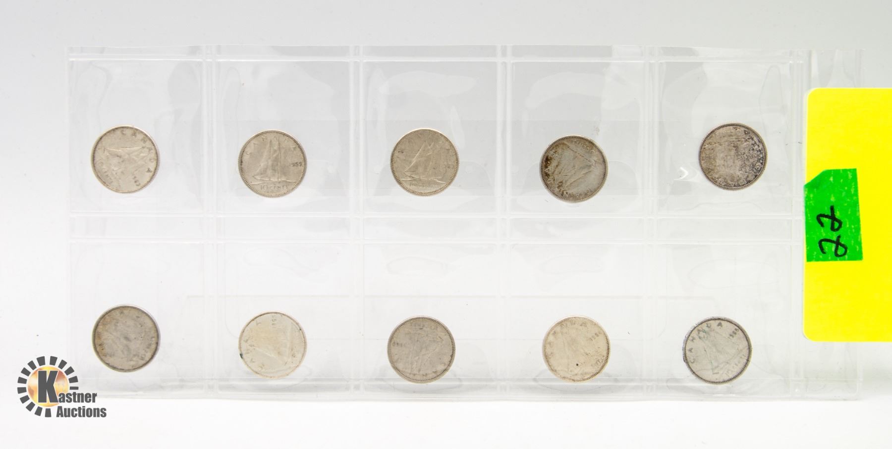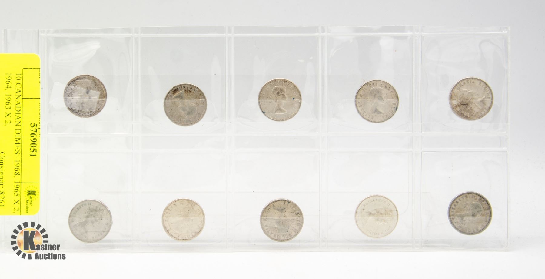 10 CANADIAN DIMES: 1968, 1965 X 2, 1964, 1963 X 2,