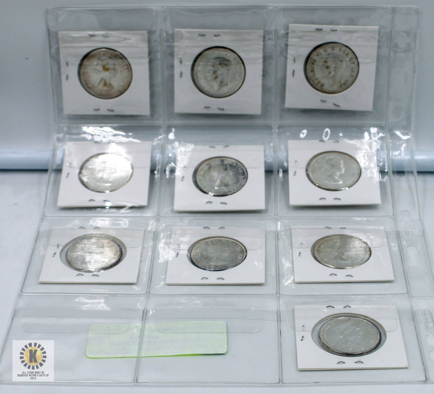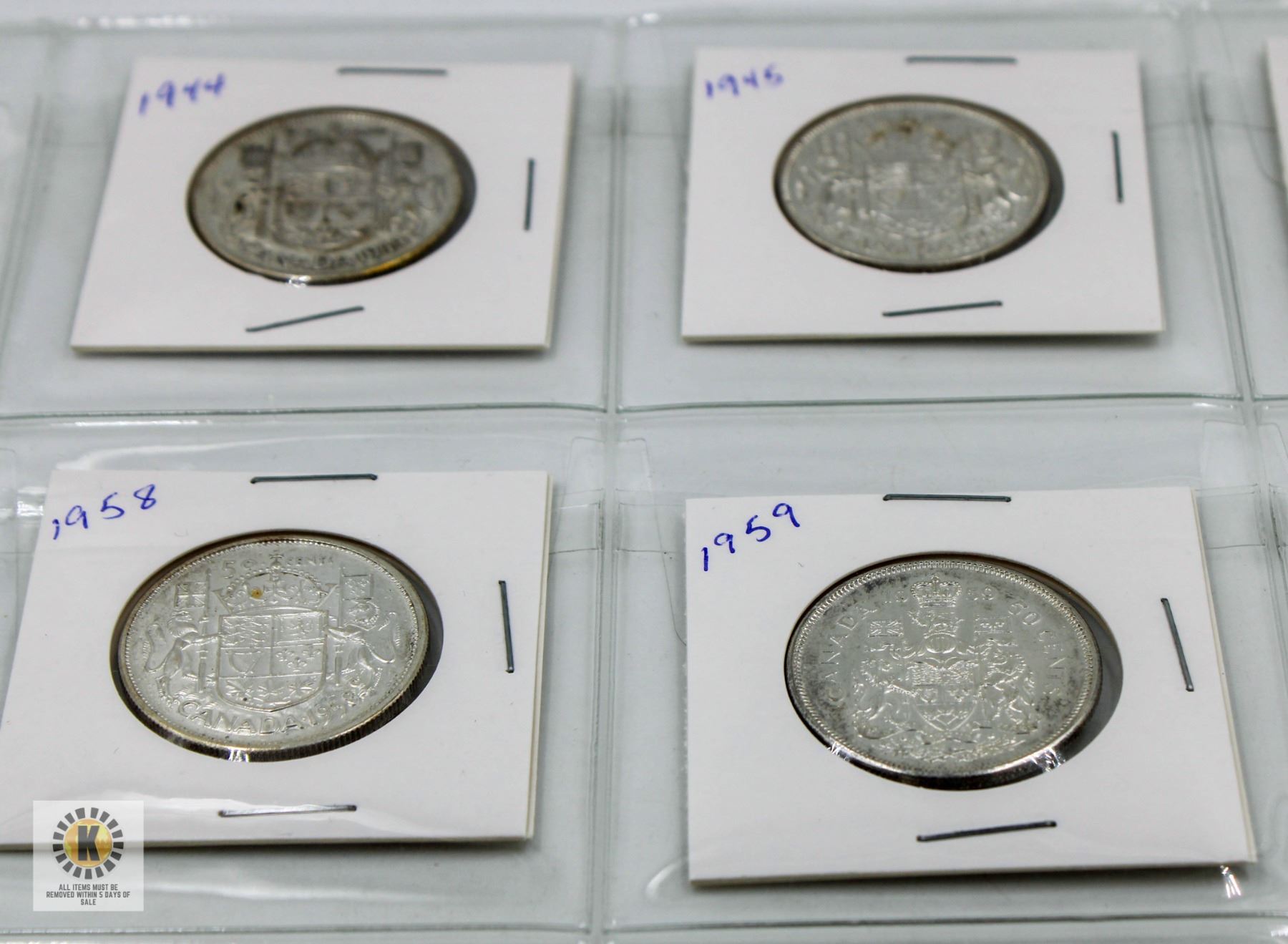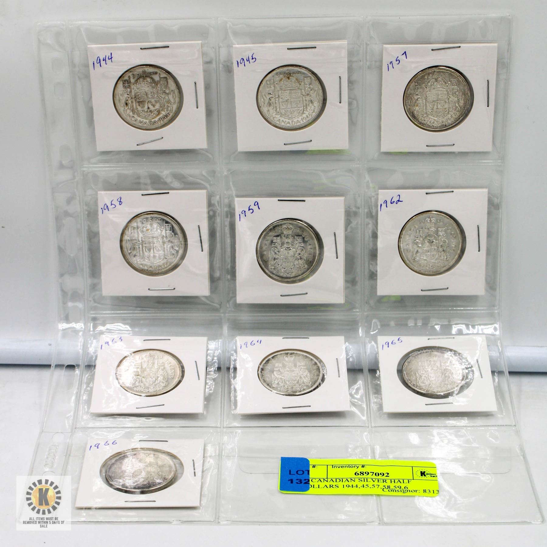 10 CANADIAN SILVER HALF DOLLARS 1944,45,57,58,59,6