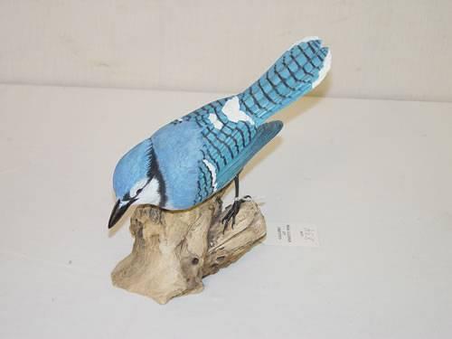 10" CARVED & PAINTED BIRD-BLUE JAY SIGNED RANDI BLAKESLEE;