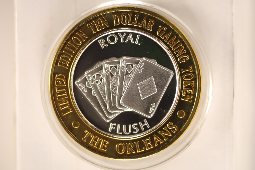 LAS VEGAS NEVADA" ON THE OBVERSE AND "ROYAL FLUSH" ON THE REVERSE. LIMITED EDITION IN HARD PLASTIC CAPSULE