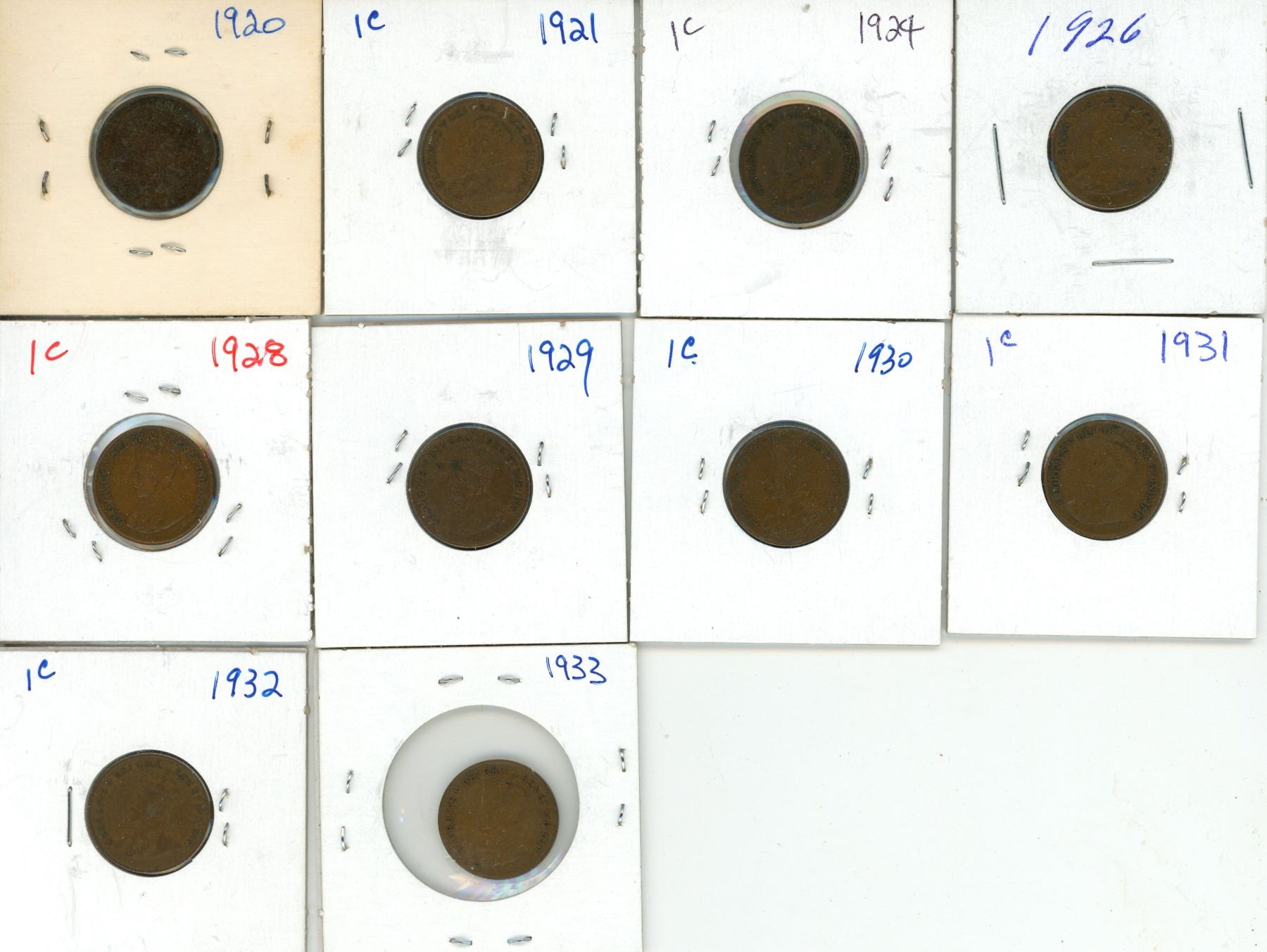 10 – CDN CENTS 1920,1921,1924,1926,1928-33 ALL VF