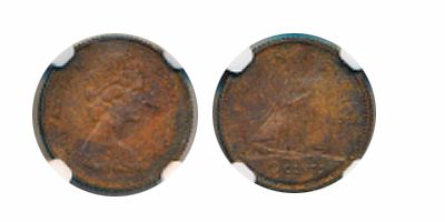 1978. NGC graded Mint State-60. Brown. Struck on a Foreign Planchet. 2.08 gms.