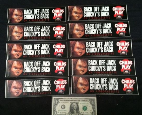 Offered here is a collection of 10 promotional stickers from Child's Play 2 "Back off Jack Chucky's Back"
