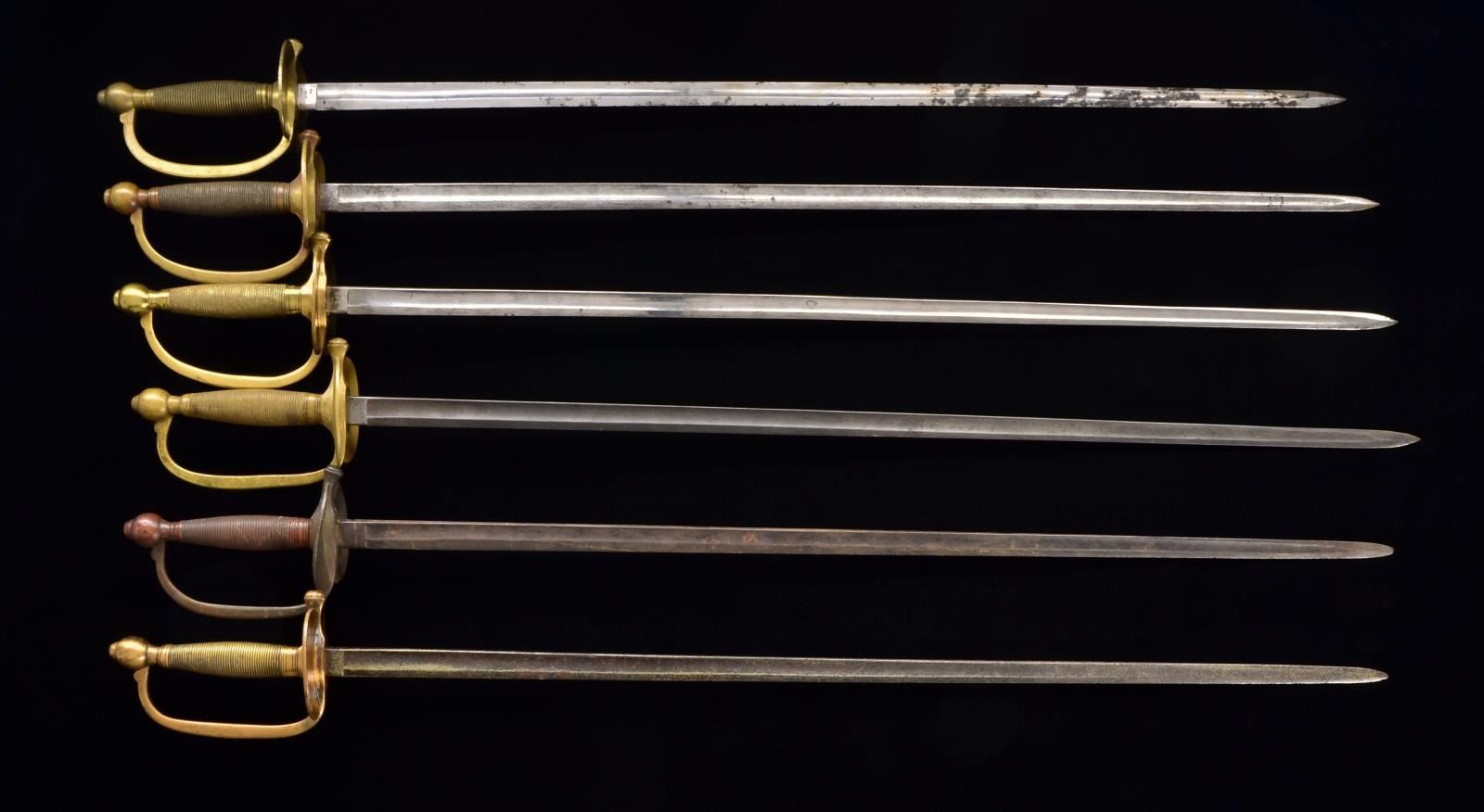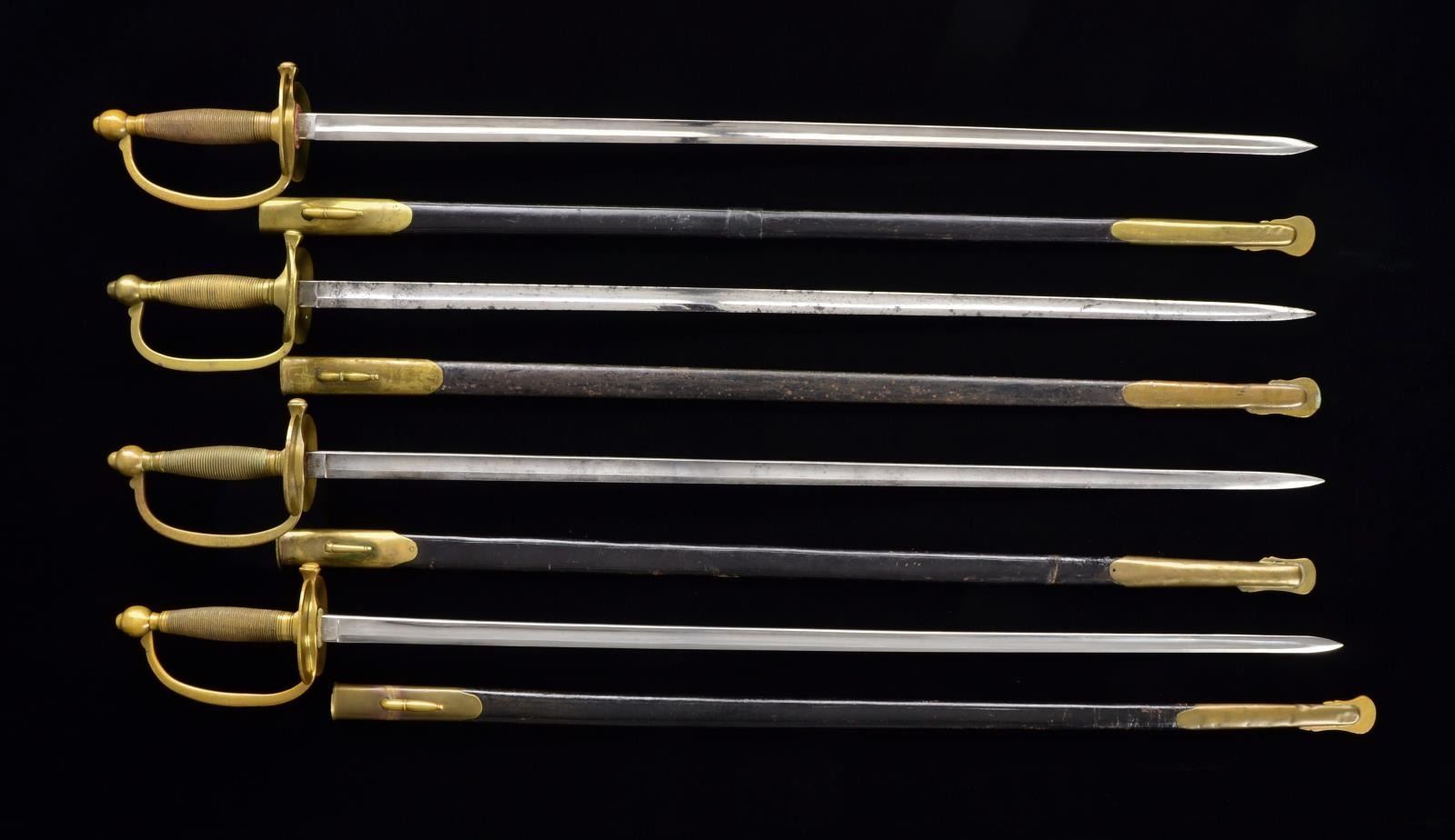 All of these swords are Civil War dated & inspected except 1847 Mexican War dated & inspected. About half of these swords are Ames, the other half Emerson and Silver, 4 have scabbards. CONDITION: good to very good overall. (02-14227/JS). $1,500-2,000.
