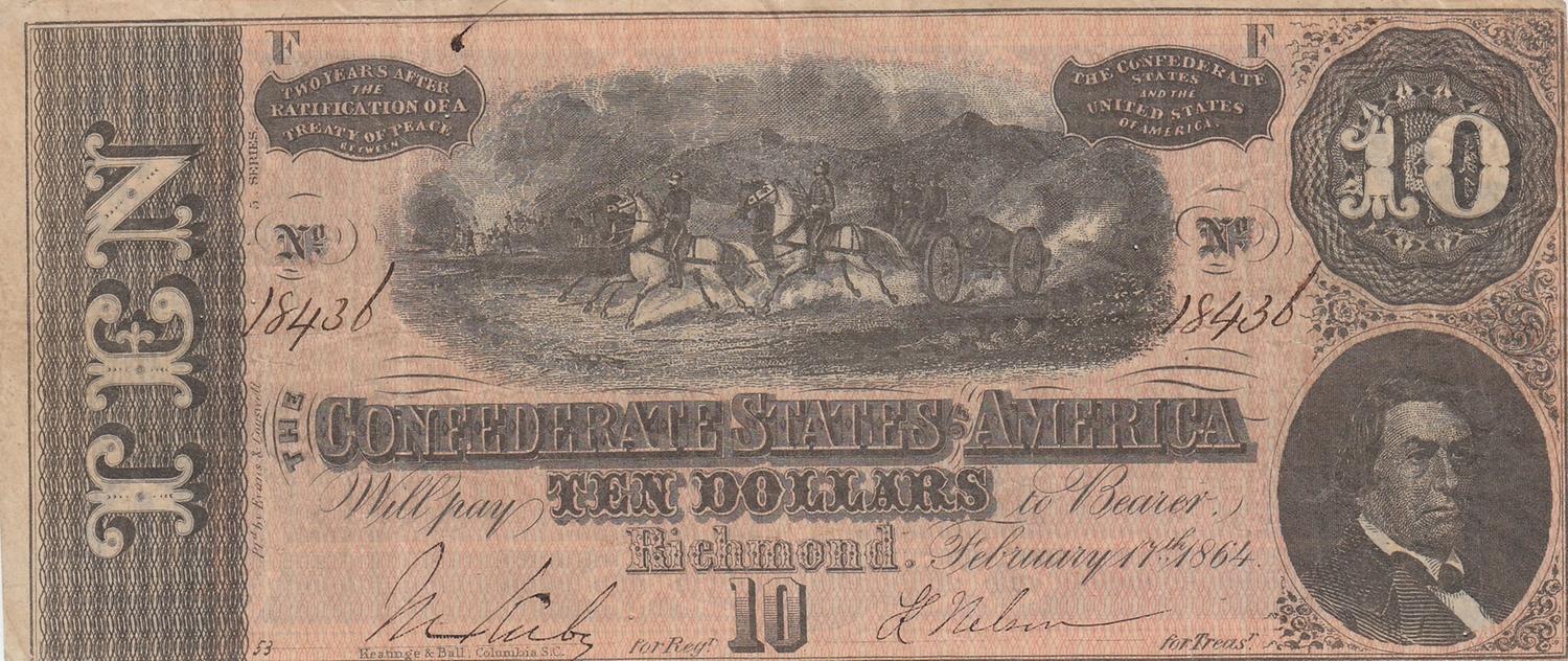 $10 CONFEDERATE CURRENCY 1864 CSA