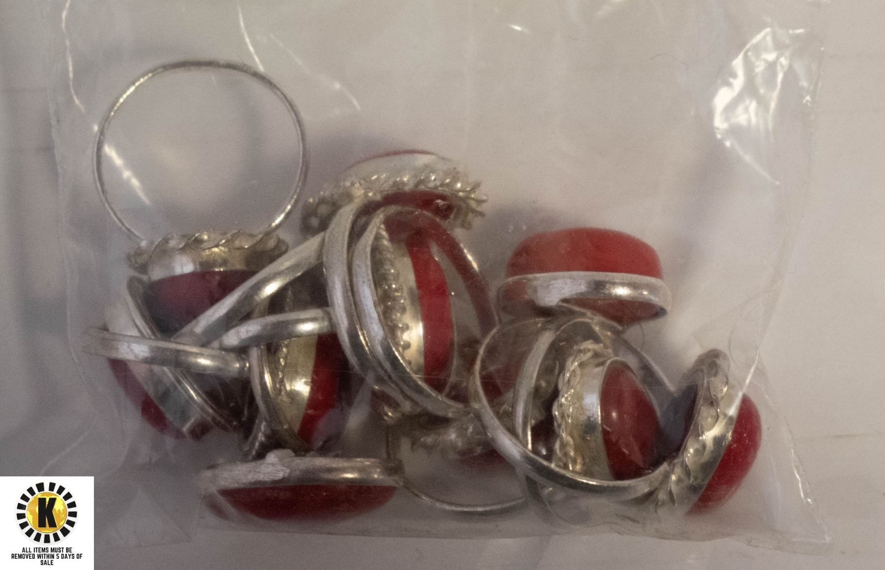 10 CORAL GEMSTONE 925 SILVER PLATED RINGS