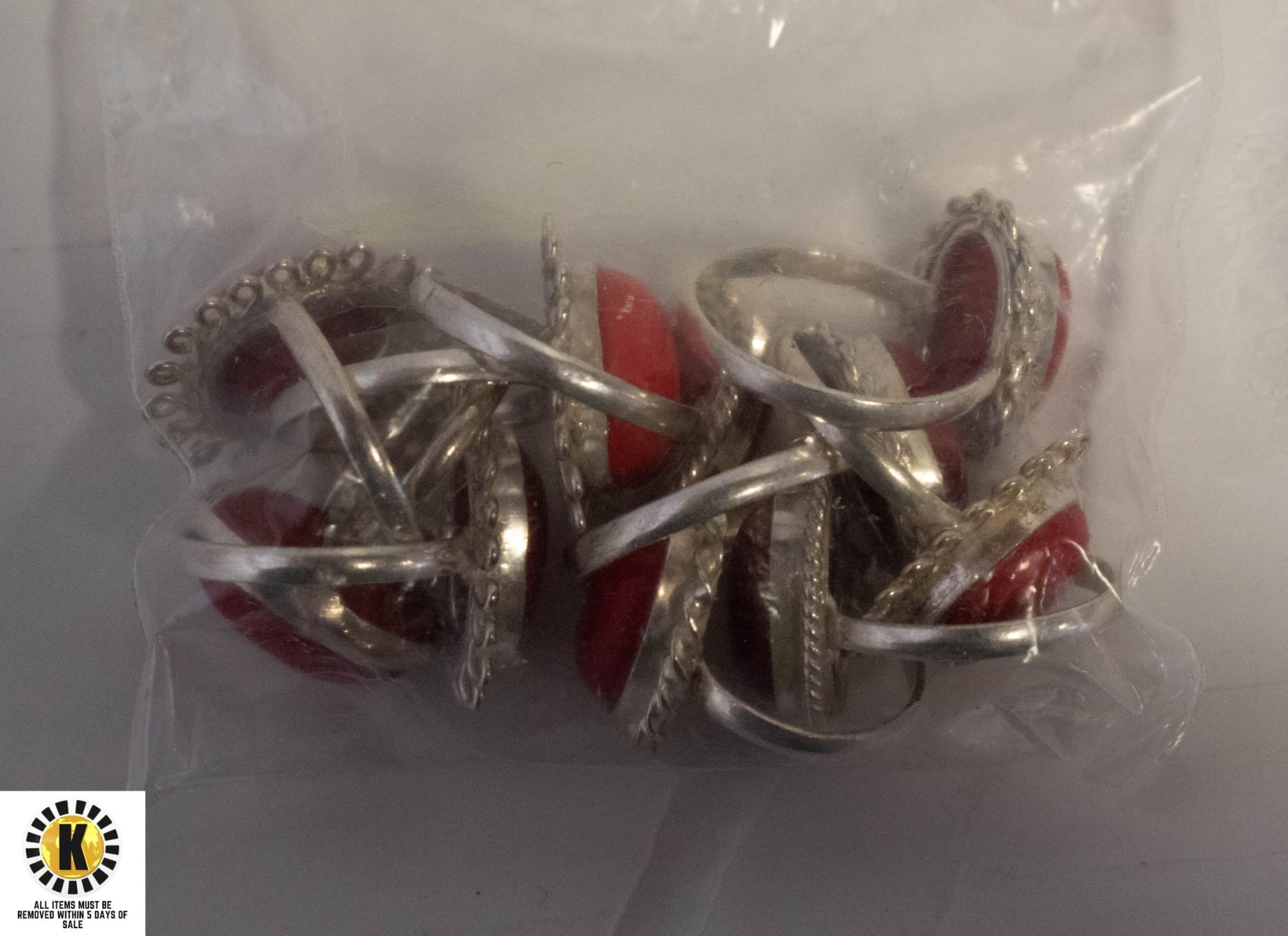 10 CORAL GEMSTONE 925 SILVER PLATED RINGS ÿÿ