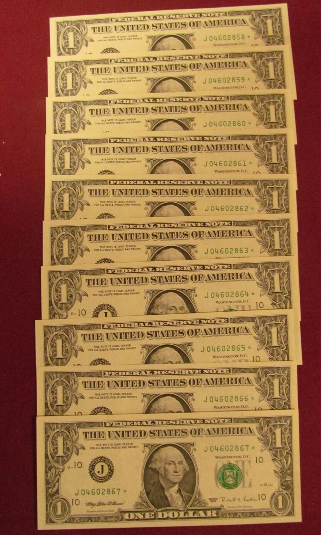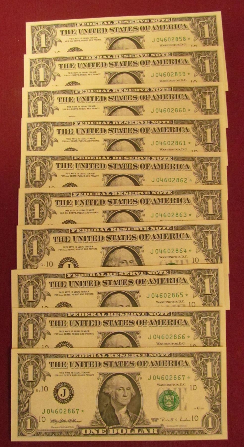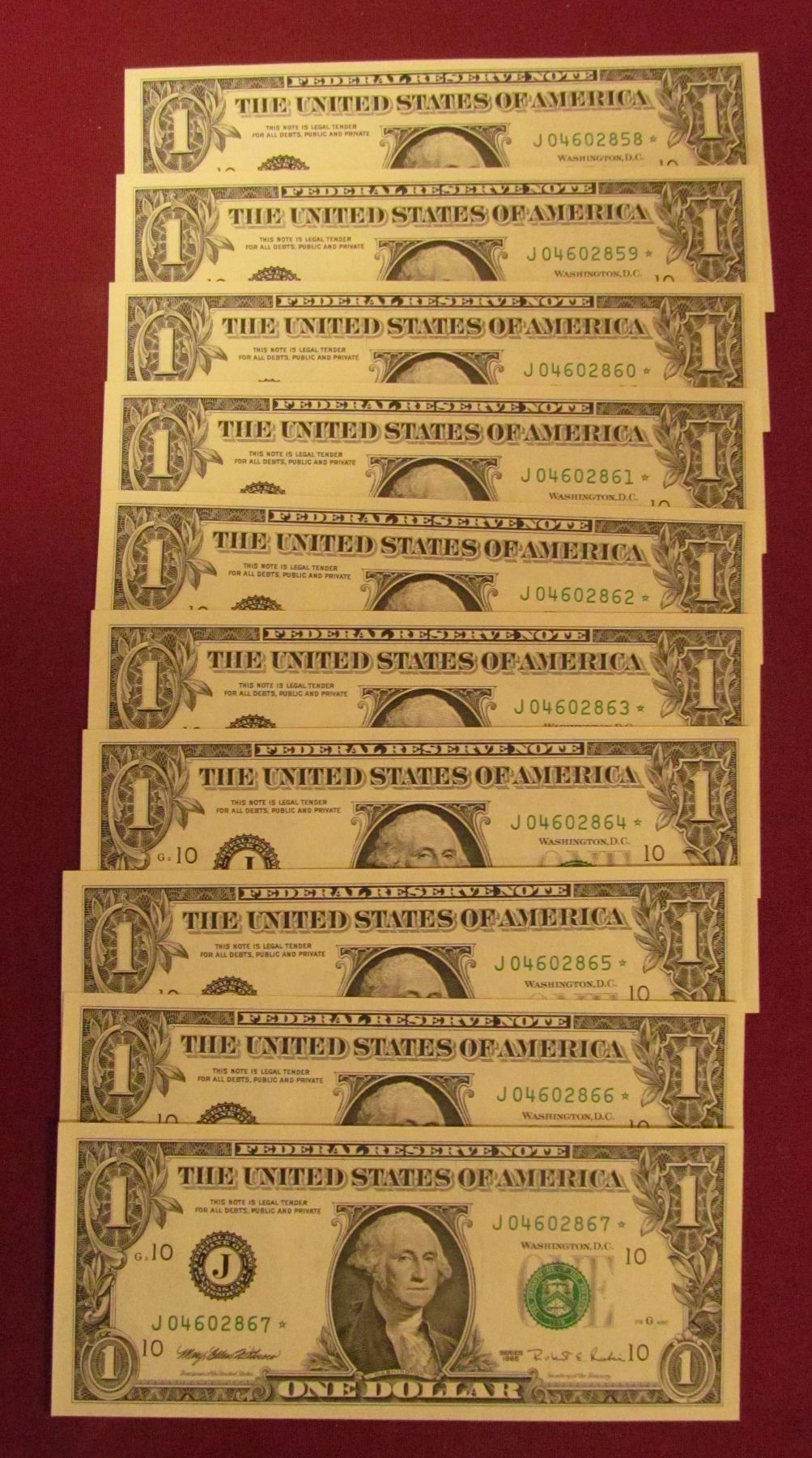 10 CRISP AND CONSECUTIVE ONE DOLLAR STAR NOTES SERIES 1995