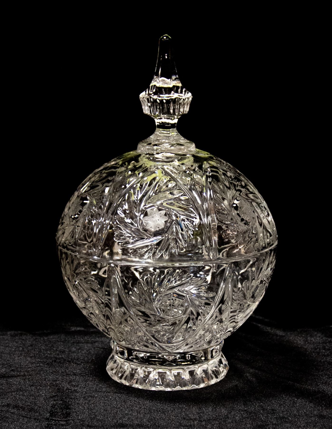 10" CRYSTAL CANDY DISH WITH LID 1950'S