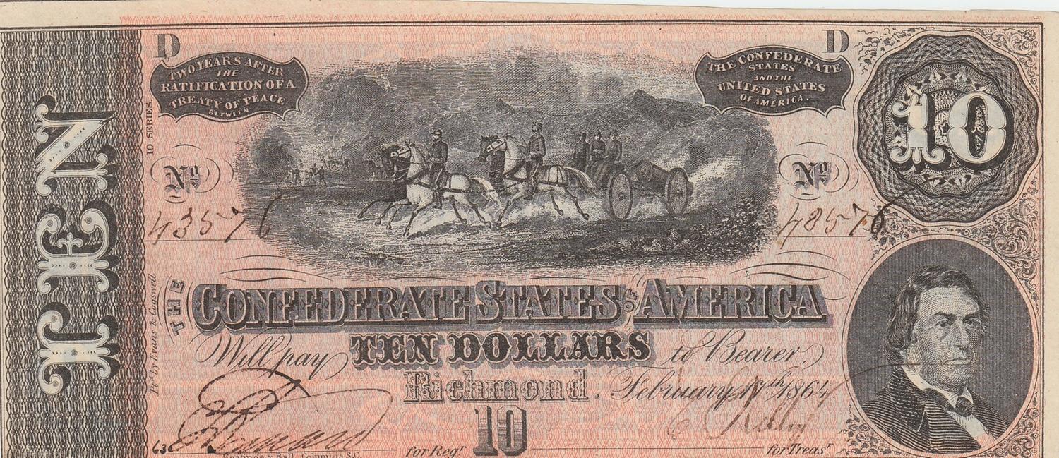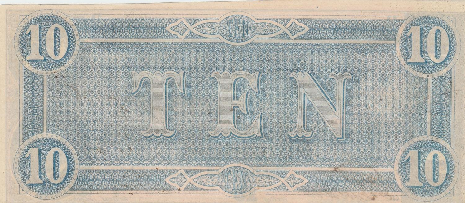 $10 CSA CONFEDERATE 1864 SHARP BOLD NOTE