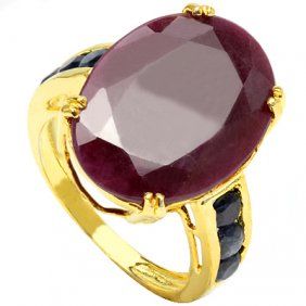 THIS AWESOME RING IS MADE OUT OF OVAL 13X18MM 10.59 CT GENUINE INDIAN RUBY & 6 PCS 3MM ROUND SAPPHIRE CRAFTED IN 0.925 STERLING SILVER W/ PLATINUM.