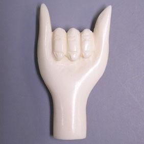 CARVED VINTAGE IVORY HAND. IT WEIGHTS 10 CTS AND MEASURES 30x17 MM.