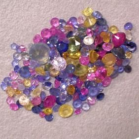 LOT OF MULTICOLOR SAPPHIRES - DIFFERENT SHAPES AND SIZES. THE LOT WEIGHTS 10 CTS. NATURAL INCLUSIONS VISIBLE.