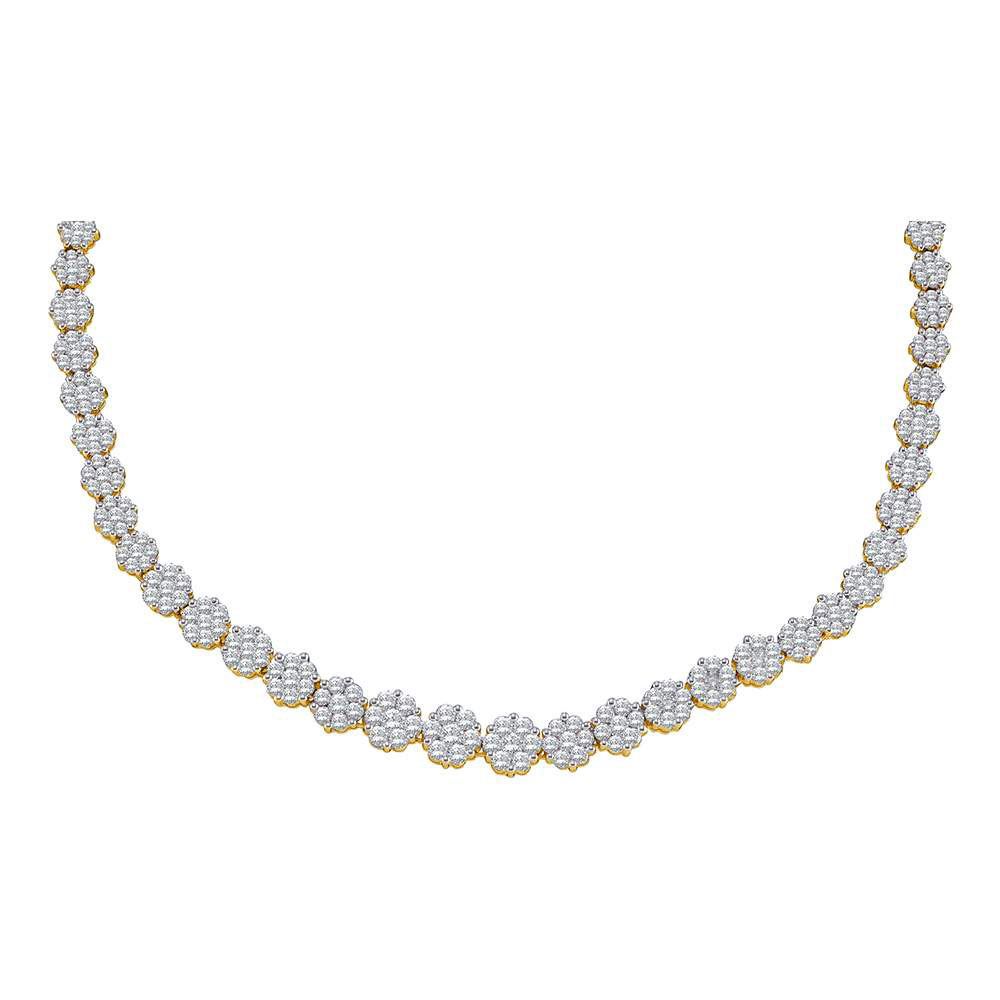 REF-899X9T ---- 10 CTW Round Diamond Flower Cluster Luxury Necklace 14kt Yellow Gold