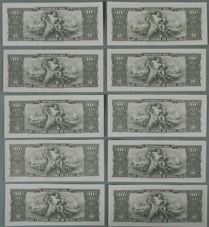 10 CU Brazil 10 Cruzieros Counter Stamped Paper Money * All notes counter stamped by Central BankDetail: Circulated *