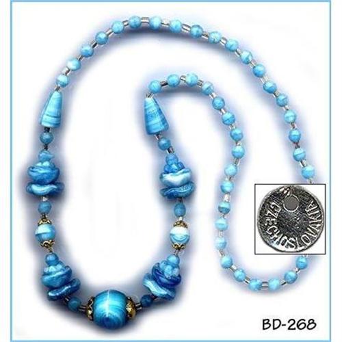 Please note that for Ebay Live Auction only bids at or above $190 will be successful and meet our reserve!!!This is beautiful Czech Art Deco necklace composed of aqua blue opaque glass molded floral, cone and round beads. Signed "Made in Czechoslovakia" on round metal tag. Dimension : 17" long. Age : 1930's, mint unused condition!!!Pictured is one necklace, but remember you are buying lot of 10 necklaces!!! Retail value $390, our Ebay Live Auction reserve is much less ($190). We have large quantity of Vintage beads (close to 400 styles) - bead designers and dealers please inquire.