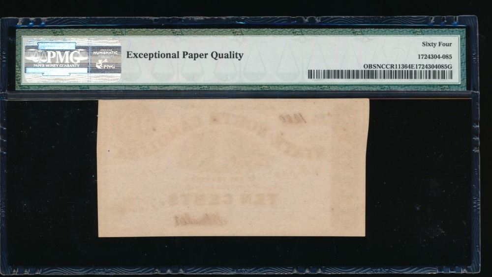 One 10 Cent 1862 Raleigh NC Obsolete Note PMG 64EPQ.
