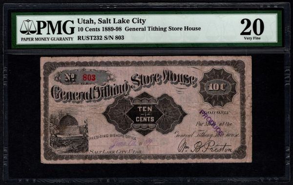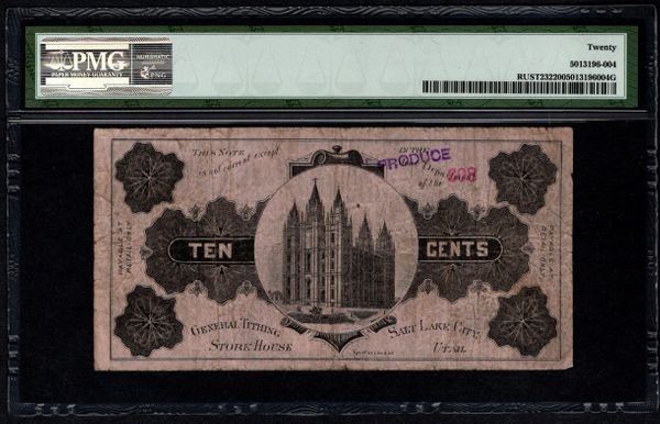 One 10 Cent 1889-98 General Tithing Store House Note PMG 20.