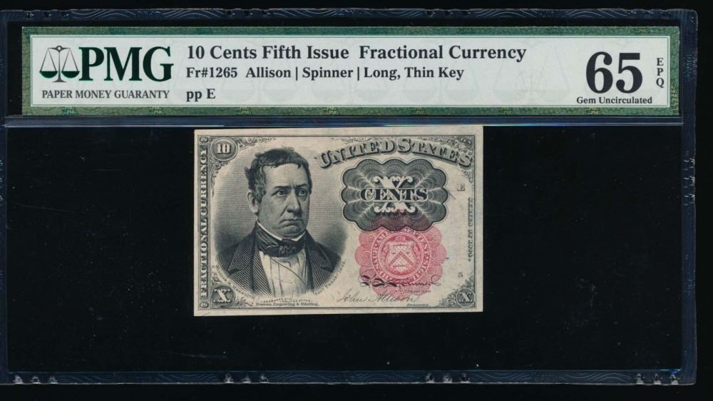 One 10 Cent Fifth Issue Fractional Note PMG 65EPQ.